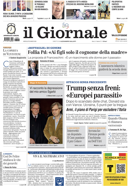 “Follia Pd: Ai figli solo il cognome della madre” (Il Giornale).